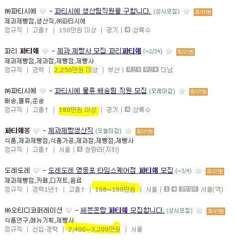 요리사 연봉 비교 요약