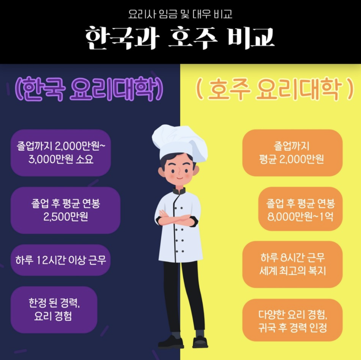 #요리사연봉 #나라별연봉 #한국요리사 #호주요리사 #미국요리사 #홍콩요리사 #일본요리사 #요리사비교