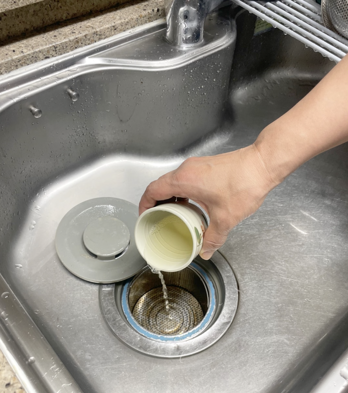2. 식초희석한것을 싱크대에 부어준다.