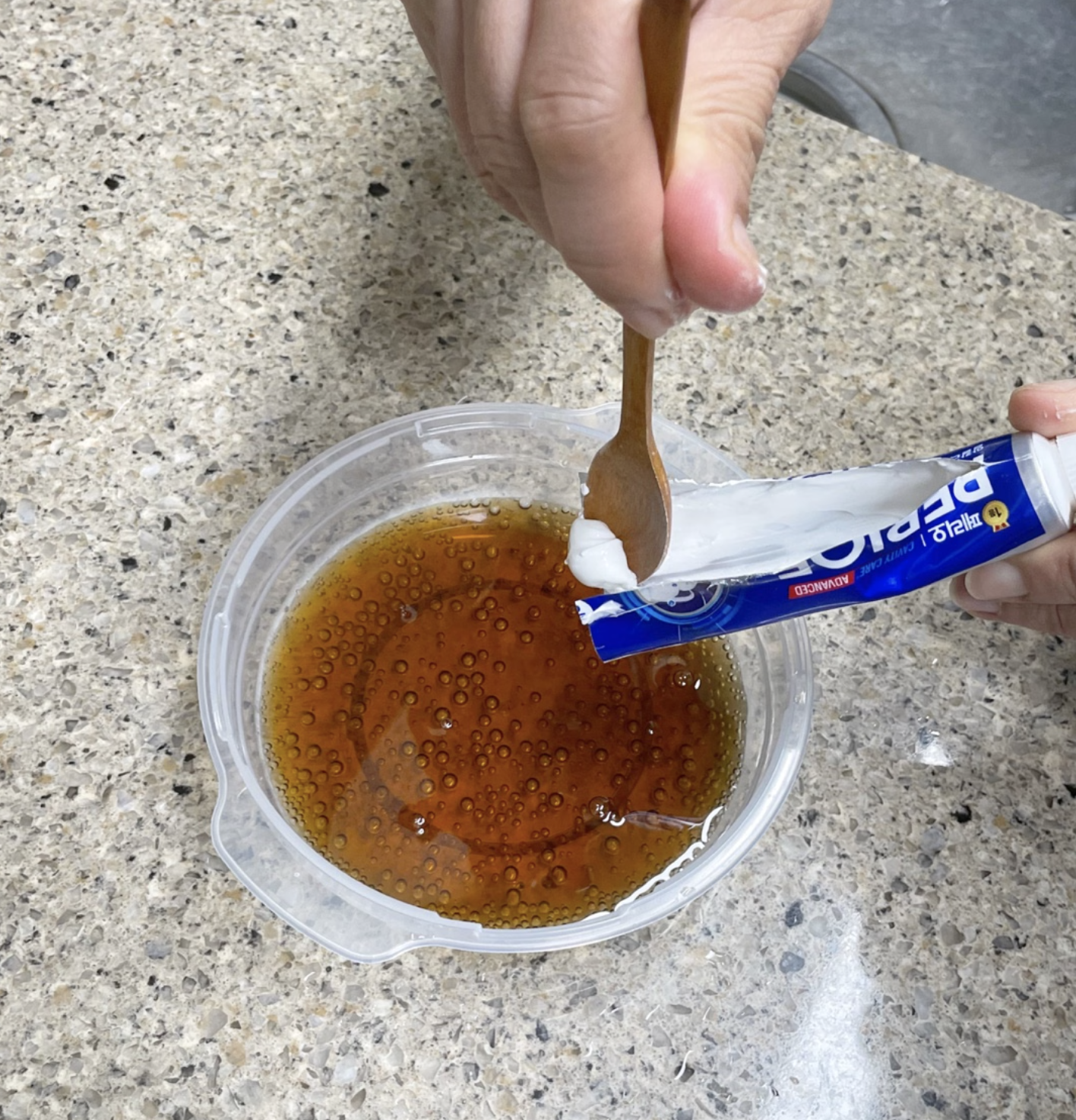 4. 다 녹으면 물로 행궈준다.