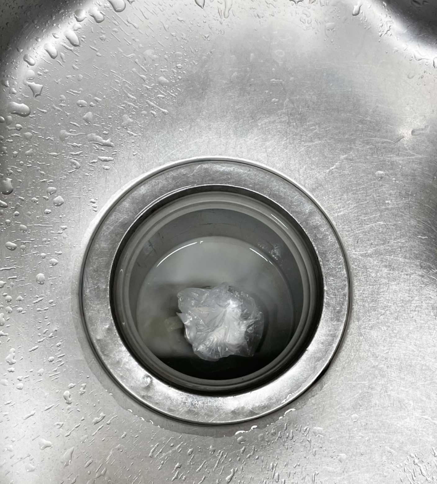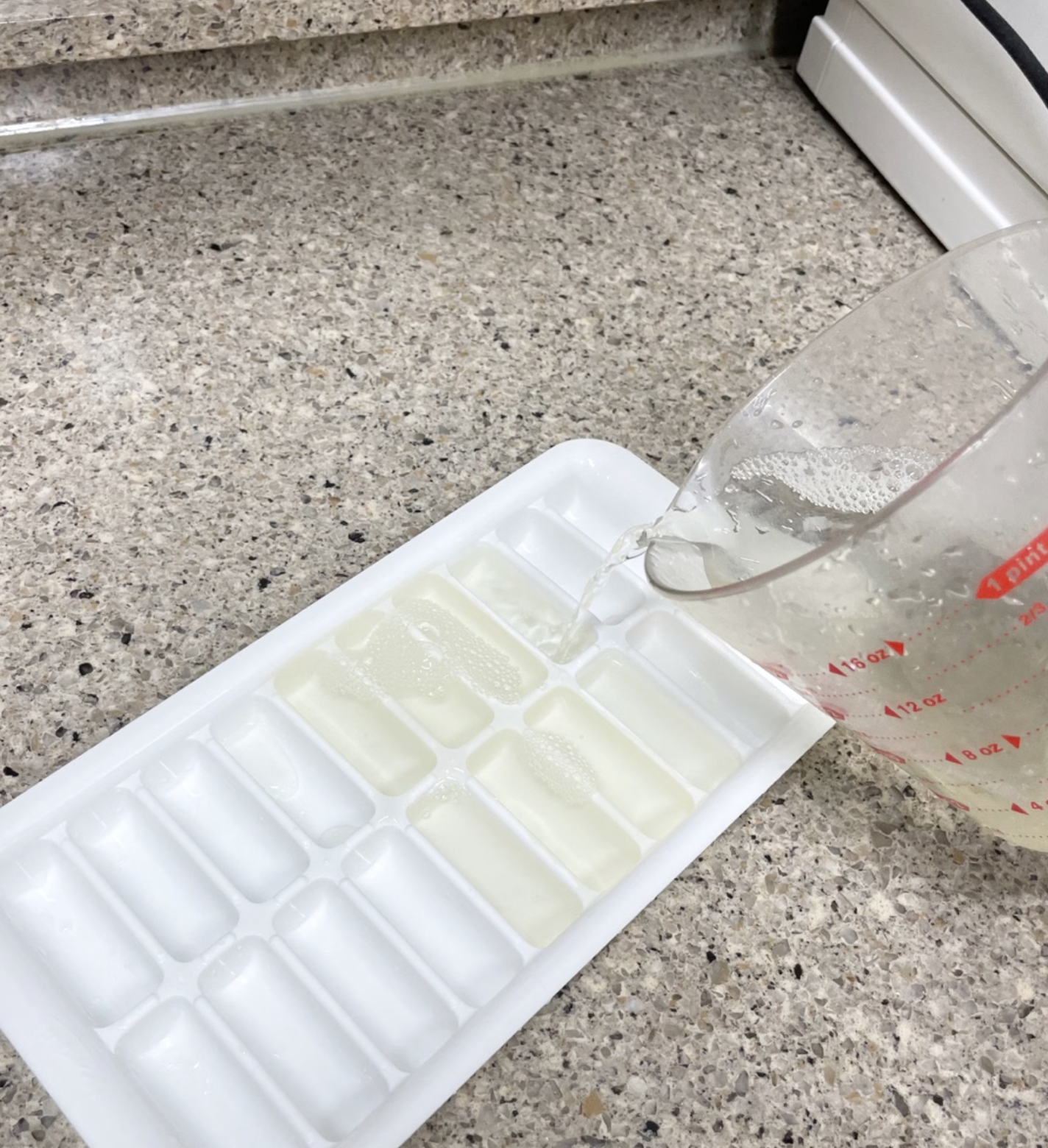 3. 얼려놨던 식초 얼음을 싱크대에 붓는다