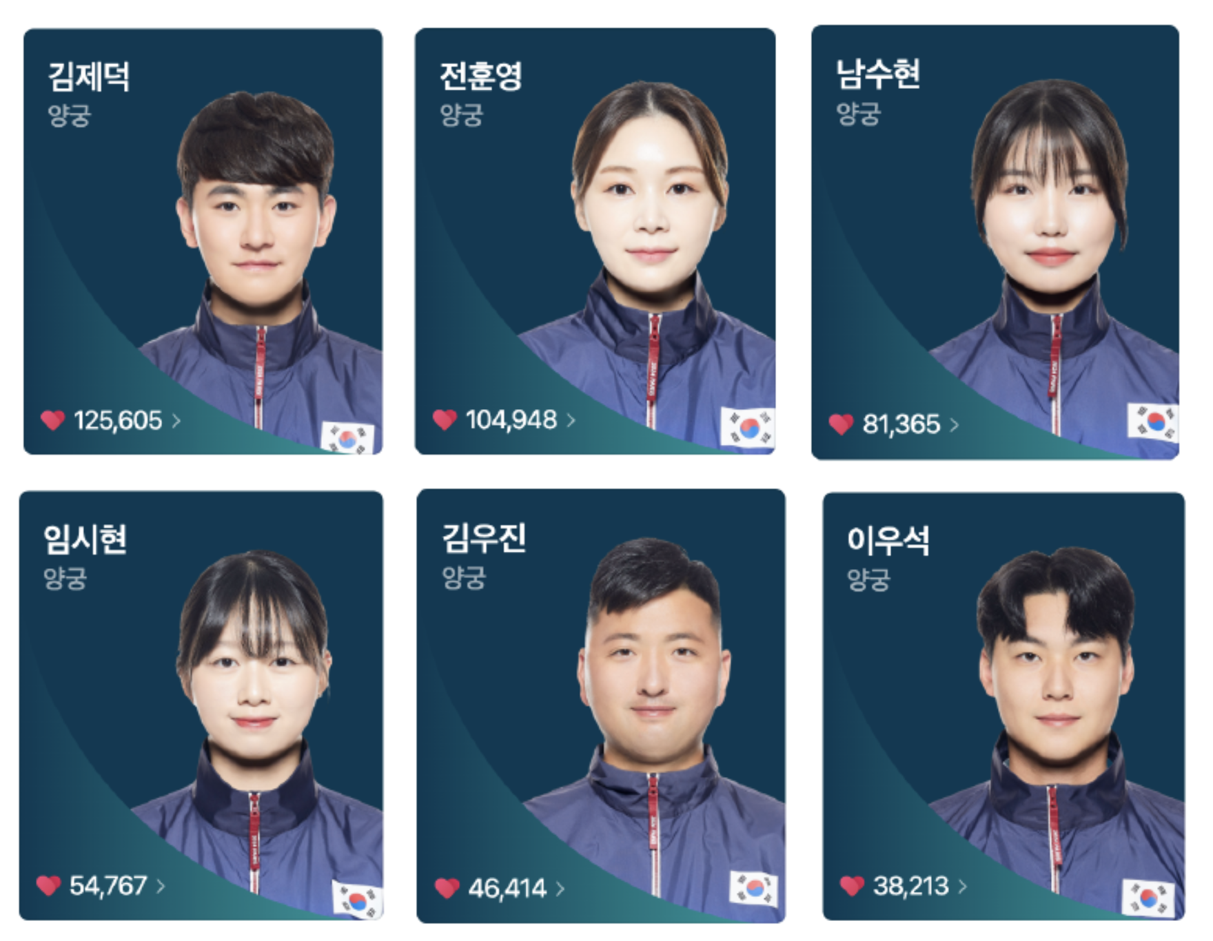 김제덕, 전훈영, 남수현, 임시현, 김우진, 이우석