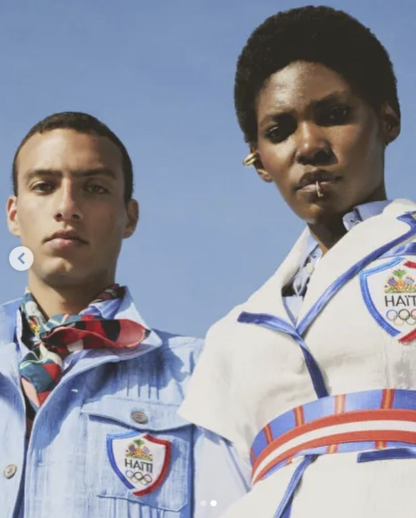 이탈리아 패션 디자이너 스텔라 진은 팀 아이티의 파리 2024 컬렉션 디자인을 이끌었습니다. 그녀는 아이티 출신으로서 자신의 뿌리에 오마주를 바치며, 아이티 예술가 필리프 도다르와 협력하여 그의 작품을 선수들을 위해 선수단복에 녹여냈습니다. 여성 선수들을 위해서는 아이티에서 직조한 샴브레이셔츠와 풀 스커트를, 남성 선수들은 클래식한 아이티 셔츠인 과야베라에서 영감을 받은 필드 재킷을 입게 됩니다.