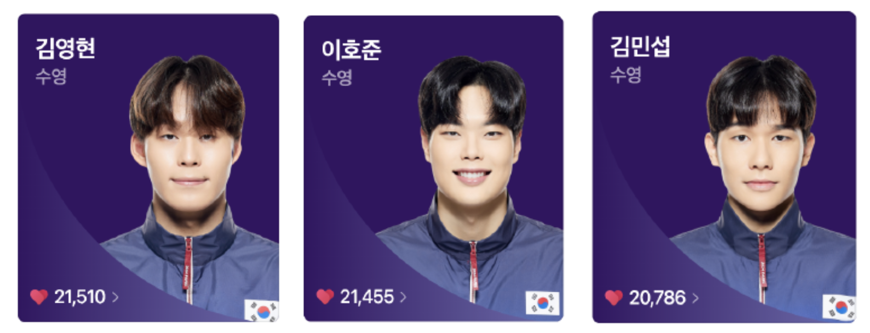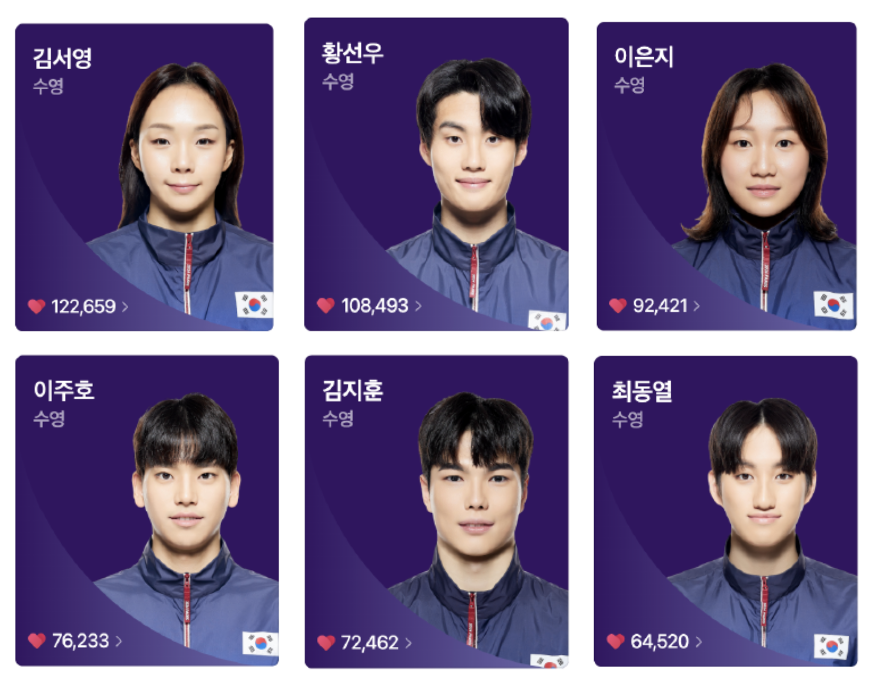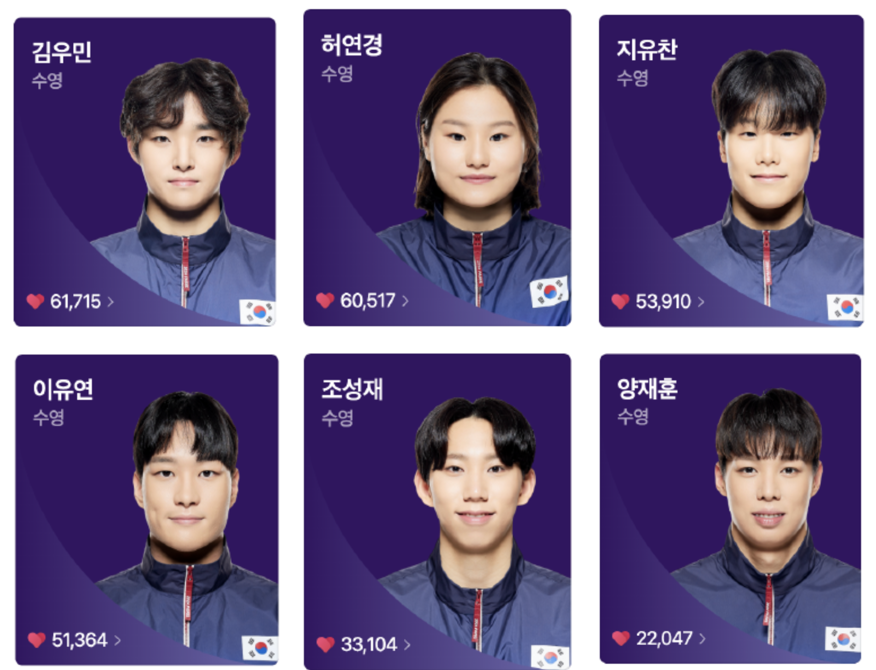 김서영, 황선우, 이은지, 이주호, 김지훈, 최동열, 김우민, 허연경, 지유찬, 이유연, 조성재, 양재훈, 김영현, 이호준, 김민섭