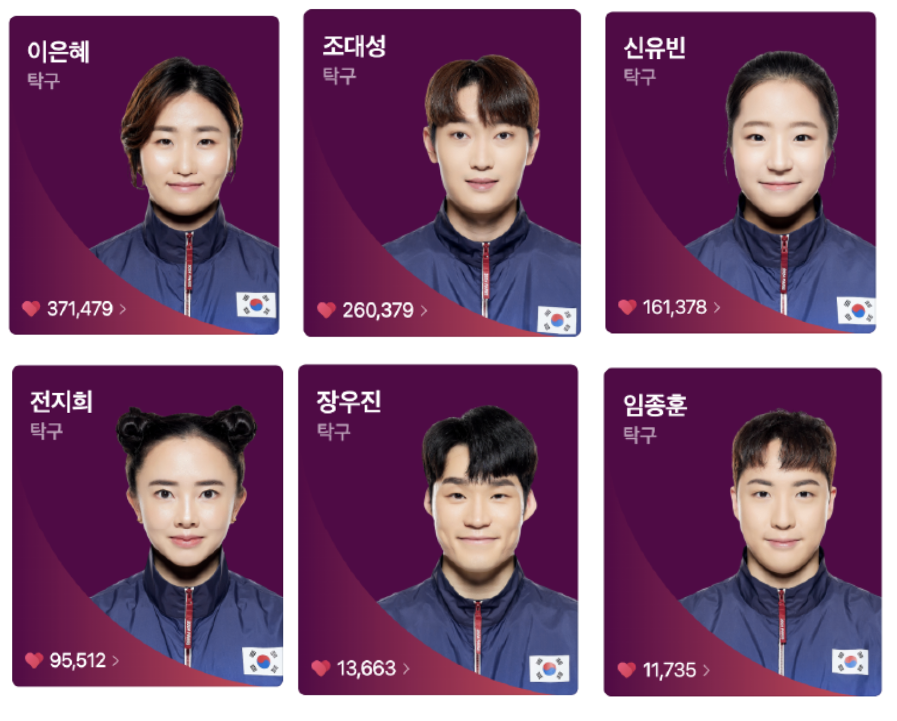 이은혜, 조대성, 신유빈, 전지희, 장우진, 임종훈